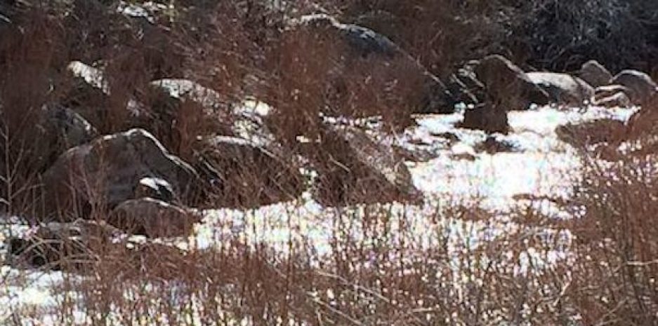 the boulder and slinks toward me.